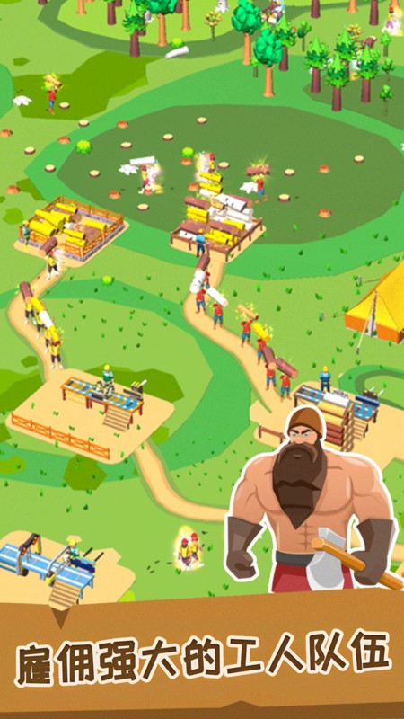 伐木工传奇游戏手机版中玩家需要做的就是砍树,能够招募工人来为你砍树,订单不断,砍伐不断,玩法简单粗暴,能够不断升级自己的木材工厂,扩大环境和人员规模,提高砍伐的效率!