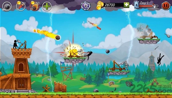 勇敢火柴人热门游戏的续作,这个火柴人在塔顶上弹射器的帮助下,努力保护他的城堡免受火柴人敌人的破坏,现在,我们的火柴人战士拥有全新武器和大量防御手段,除了弹射器之外,你可以用准确的炮弹攻击并摧毁弩炮台后的敌人。你也可以通过在城堡前面设置路障或者地雷来阻止敌人,从而升级防御。游戏中增加了新的装备和盔甲,使你的火柴人英雄变得更强大!