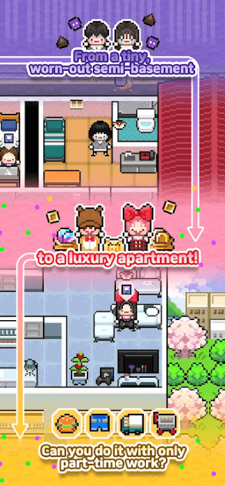 独自生活3游戏作为像素元素的模拟生活手游,你要在这里参加各种活动,同时赚取一些生活费,你的主要目的就是在学校顺利的毕业,体验不一样的生活,游戏也有很多的结局,独自生活的你将面对毕业后的各种事情问题,一起来这里看看下载吧!