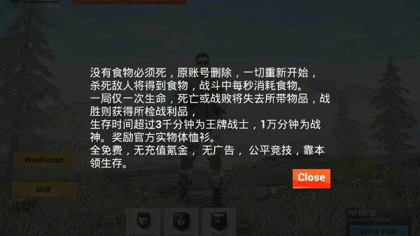 本游戏完全免费,无氪金系统,广告系统,公平竞技,靠本事生存下去!