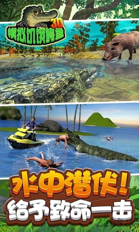 在这款游戏中玩家将控制鳄鱼进行游戏,超逼真的3D游戏画面,精致的游戏内容玩法,不断吞噬猎物让自己变得更加强大,你是水中的王者没有人敢招惹你,选择你的攻击目标快速的发动攻势,面前的美味一定不能错过,随着饭量的增大,你需要捕获更多的猎物。