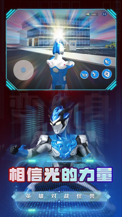 1.你相信光吗?化身为光吧。点燃英雄梦想,变身成为你喜欢的奥特曼,然后开始战斗吧