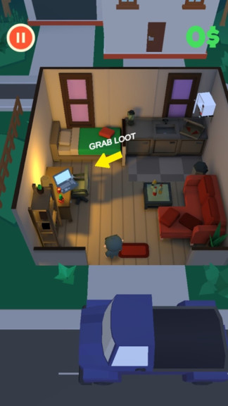 小偷来了游戏是一款冒险闯关类游戏。游戏中你需要扮演一个偷偷摸摸的小偷,尽可能的伪装自己。非常考验操作技术和反应能力,不要被守卫的手电筒点亮,顺走一些东西,灵活的操作能帮助你快速逃脱,游戏氛围非常紧张刺激。