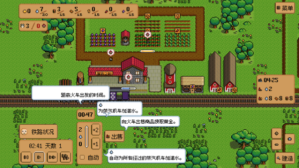 火车来了有显示离开的时间,你可以出售你的作物获得金币,为蒸汽火车加满水。人口增加只要有足够多的房屋,火车可能会带来人口。