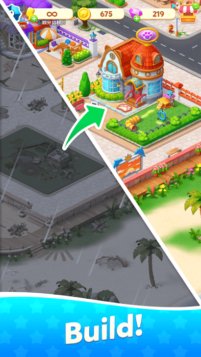 城镇地平线破解版是一个城镇装扮的消除游戏,玩家们只需要对应的完成合成消除游戏就能获得对应的家具,让你的小镇都换新吧,还有一些其他的玩法,给你不同的挑战,还有一些好看的建筑等你来解锁,快来看看吧!
