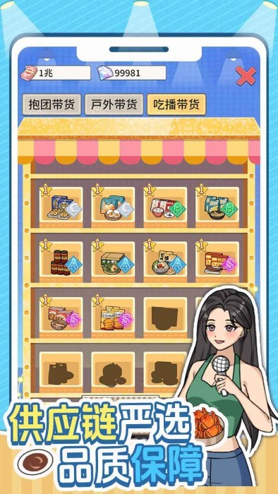 带货王来了最新版作为放置模拟经营游戏,正在边吃泡面边看直播的你听说隔壁邻居的儿子搞直播赚了大钱,好像找到了一条发家致富之路,他能做我也能做!从今天开始,立志成为带货王!从零开始,打造你的直播帝国!