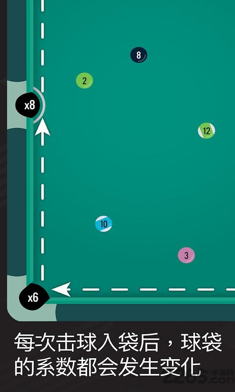 传统台球模拟对战游戏一款有意思的台球对战游戏,经典的台球玩法,将每一个台球精准的落入洞口中,获得游戏的胜利,不要食物,不然就将会失去一次机会,感兴趣的用户欢迎来2265安卓网点击下载。