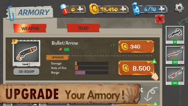 升级并解锁新装备,提升生存几率。