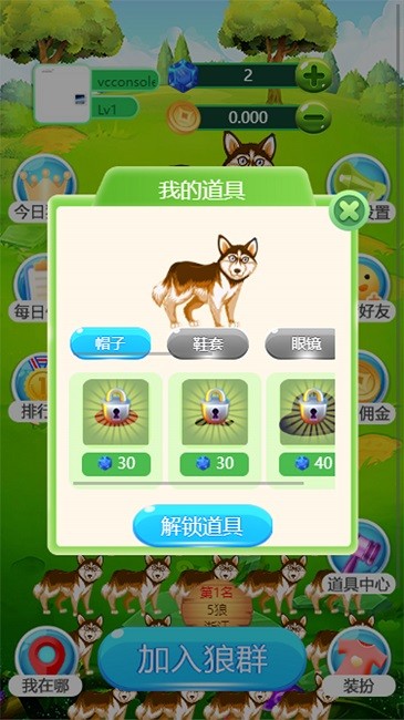 狼了个狼是一个卡通消除游戏,用户可生成一头的小狼,并且给狼进行戴帽子、项圈、马甲等系列装扮,拥有属于会员自己的可爱狼形象