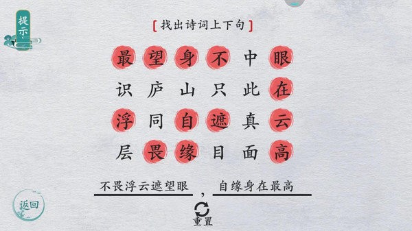 2、简约界面设计更加清新,选择正确汉字组合得到正确答案