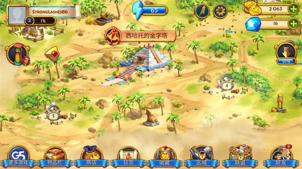 《埃及的珠宝最新版》(Jewels of Egypt)是由知名游戏开发商G5 Entertainment精心打造的一款融合三消玩法与城市建设元素的休闲益智佳作。在这款游戏中,你不仅要完成数百个巧妙设计的消除关卡,更要通过每一次成功的消除,挖掘隐藏在地下的珍贵资源,用以修复并重建古埃及辉煌的文明遗迹。从金字塔到神庙,从宫殿到方尖碑,你的每一步操作都将推动这片古老土地重焕生机。