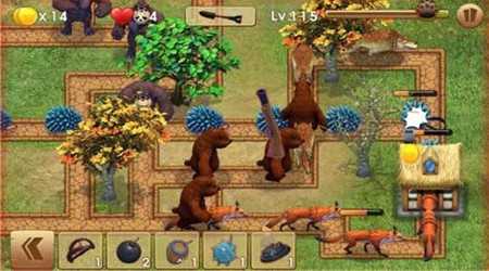 《打野兽Hit the Beast》融合了经典打地鼠”式操作与策略升级机制。在每一关限定时间内,野兽会从不同位置突然冒出,玩家需快速反应、精准点击,用手中武器将其击退。成功保护小鸡即可获得金币奖励,用于购买或升级武器,提升战斗力以应对后续更高难度的挑战。