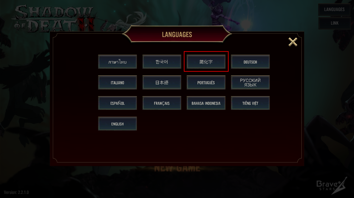 进入《死亡阴影2中文版》后,首先点击右上角语言选项,选择中文”即可切换界面语言,畅享无障碍操作体验。