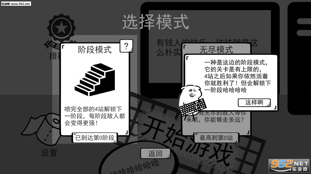 《无情的哈哈机器》是一款简约搞笑风格的休闲闯关游戏,游戏中玩家将成为键盘侠,使用弹幕哈哈哈来攻击敌人,游戏借鉴了弓箭传说的一些设定,但是整体上还是非常有趣。游戏的操作简单容易上手,左摇杆控制移动,右摇杆控制射击的方向,赶快下载体验吧!