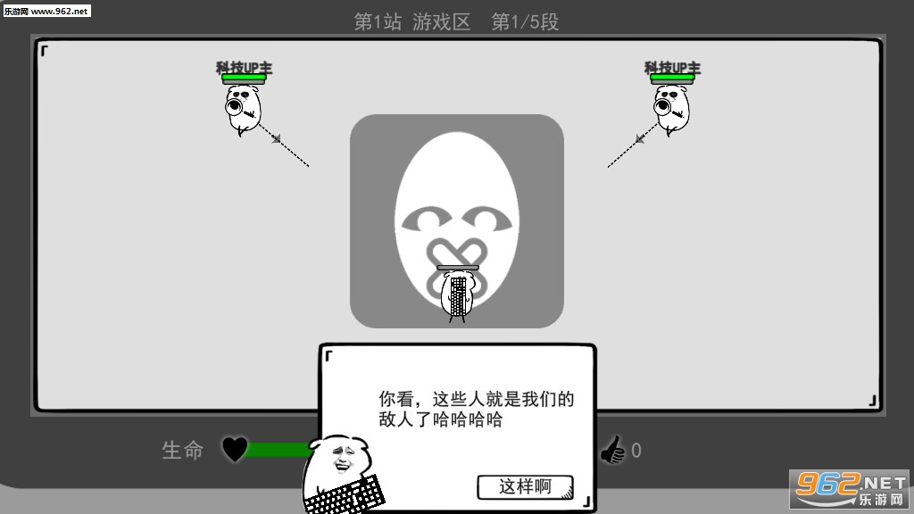 一款非常简陋搞笑风格的射击闯关游戏,游戏中借鉴了弓箭传说部分系统,改变了控制的方式,游戏中还有着非常有趣的背景。使用弹幕来攻击你的对手,游戏中充满了各种网络梗,推荐给喜欢射击游戏的玩家。