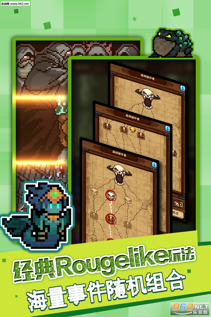 《马赛克英雄》是一款Roguelike-技能卡牌结合策略的独立游戏。游戏中,玩家可以组建自己的英雄队伍,闯关升级打boss。游戏整体以复古像素的画风和简洁卡通的英雄怪物形象,让你在探险过程中也能感受西方魔幻的风景。游戏中包含数量庞大的元素:六十多层关卡、数百种随机事件,上百种技能和装备,数十种怪物,以及更多的惊喜内容等你去发现哦~