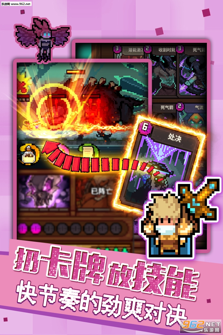 一款竖版冒险策略卡牌竞技手游,游戏采用像素风格画面设计,精心设计六十多层冒险关卡,感兴趣的老哥欢迎下载!