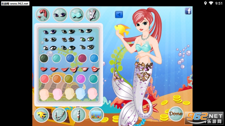 趣味的换装游戏,玩家可以凭着自己的喜好来为美人鱼换上各种服装首饰,有着丰富的发型和颜色可以选择,喜欢的朋友可以下载试试。