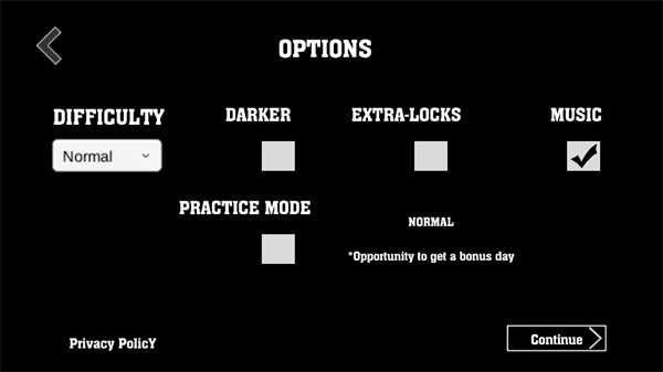 安装完成后,点击Play”即可进入游戏主界面。首次游玩前,建议先通过LANGUAGE”选项切换至中文,提升操作理解度。随后选择Continue”开始新冒险。游戏提供难度调节与PRACTICE MODE”(训练模式),适合不同水平的玩家熟悉机制。