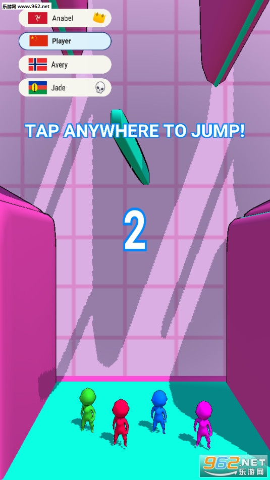 《人类跳一跳》是一款清新简约风格的橡皮人跳跃io游戏,游戏中玩家需要跟你的对手进行一场场跳跃爬高的对战,游戏中玩家需要在墙壁之间来回跳动,最后一名将会被淘汰,其余人进入下一关,直到只剩一个人能够通过整个关卡。赶快下载体验吧!