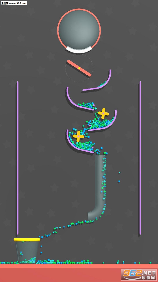 一款拥有丰富色彩的休闲益智手游,游戏的玩法十分简单,没有接触过类似玩法游戏的玩家也能够轻松地上手,游戏中玩家就是需要控制着关卡内的木板,让从上方掉落的小球能够全部落入下方的桶中,游戏内设计了数百个关卡,每个关卡都拥有精心设计的谜题供玩家挑战。