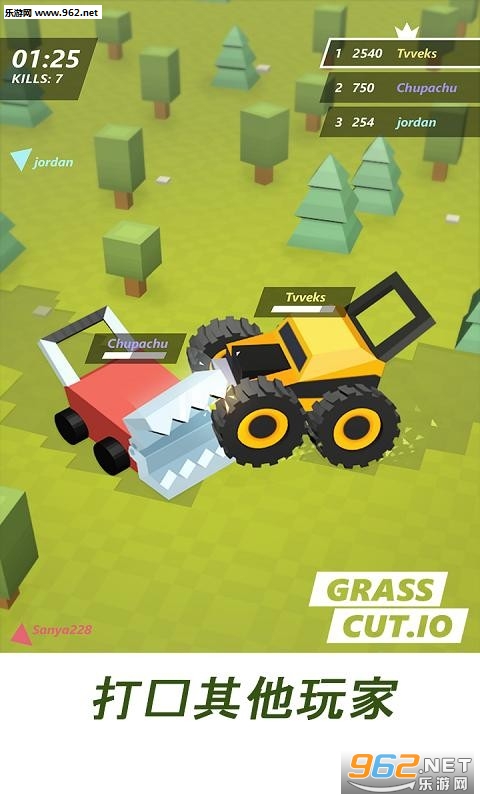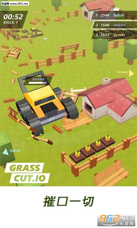 超火的多人在线io对战游戏,割草机大作战中玩家将体验清新亮丽的游戏画,操作你的割草机去碾压一切,花草,房子,眼前的一切,努力获得高分即可。