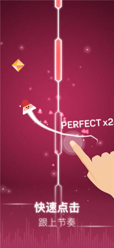 感受音乐的节奏点,轻击屏幕操作光点的移动轨迹。踩准节奏点