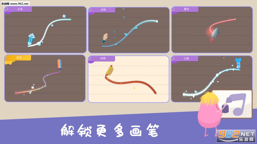 可以不断解锁更多颜色的画笔,通过画线来守护豆子小人吧。