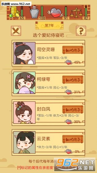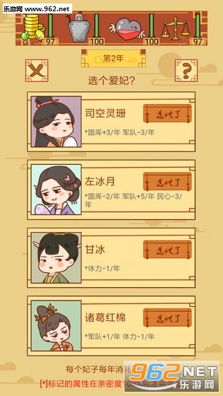 2.选择正确的策略,维持国库、军队、体力、民心等四项数值不低于0!