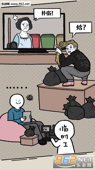 1、搞笑的游戏画面,经典的垃圾分类的题材;