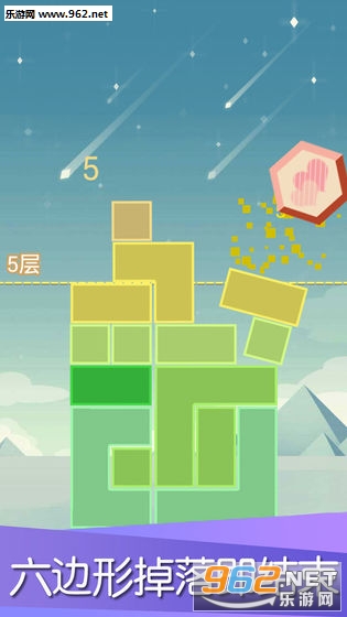 趣味的方块下落游戏,有着多种模式可以选择,玩家的任务就是让最上面的六边形平稳下落,不断的点击击碎下面的方块,喜欢的朋友可以下载试试。