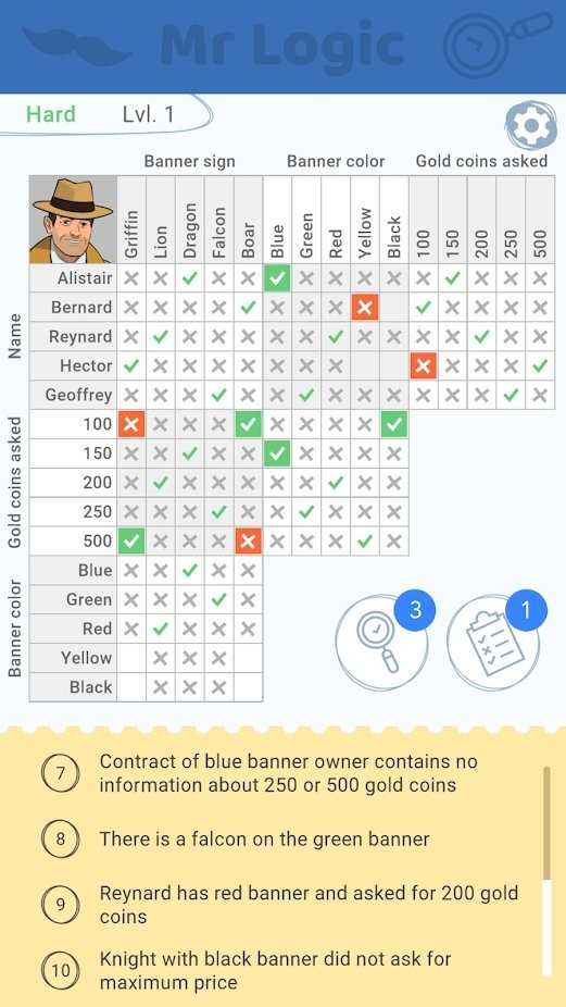 《简单线索》(mr logic)是一款专注于逻辑推理的解谜游戏,其核心玩法完全剥离了复杂的故事背景与视觉元素,将所有注意力集中在精心设计的逻辑谜题上。玩家需化身侦探,通过细致观察题目中提供的有限线索与条件,挖掘隐藏的矛盾点、关联性及顺序规律,运用严谨的演绎推理逐步排除干扰信息,最终推导出唯一符合所有条件的正确答案,体验纯粹的逻辑解谜乐趣。