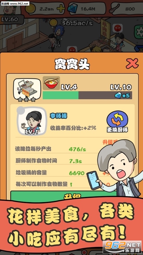 2.每天玩家收敛的财富都是可以用来提升自己的美食街的,不断的壮大升级。