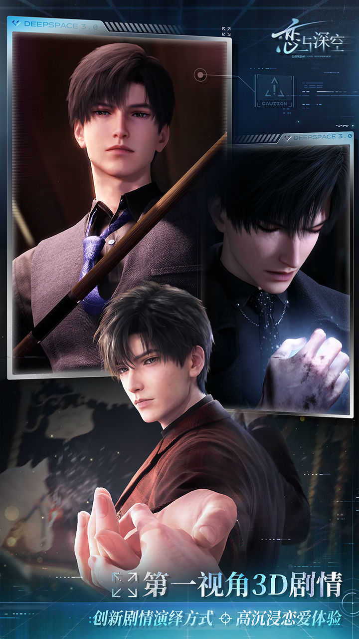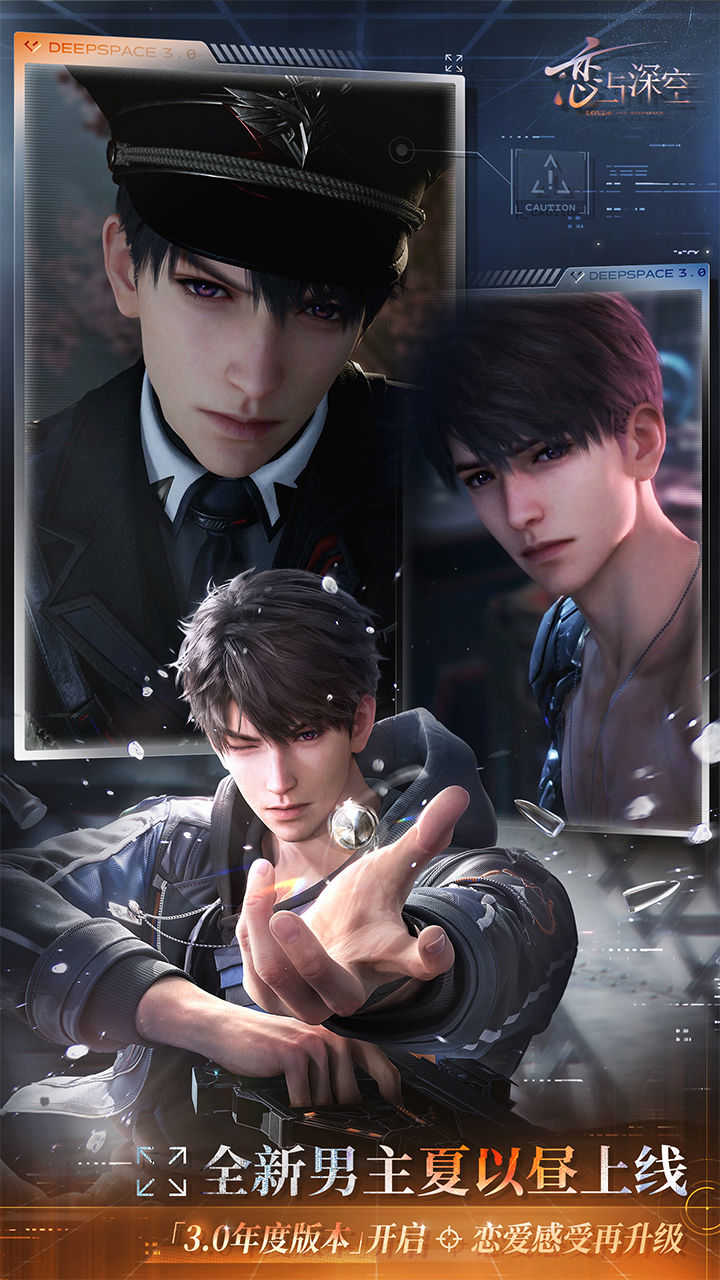 采用3D第一人称视角,营造身临其境的互动体验,模糊现实与虚拟的界限。 - 剧情全程实时渲染,关键抉择由你主导,情绪起伏真实可感。 - 主线中化身深空猎人,穿梭多元时空,与他并肩守护世界。 - 全新男主夏以昼”加入,开启多线并行的恋爱篇章。 - 自由捏脸+AI形象生成系统,打造独一无二的你”,开启专属浪漫冒险。