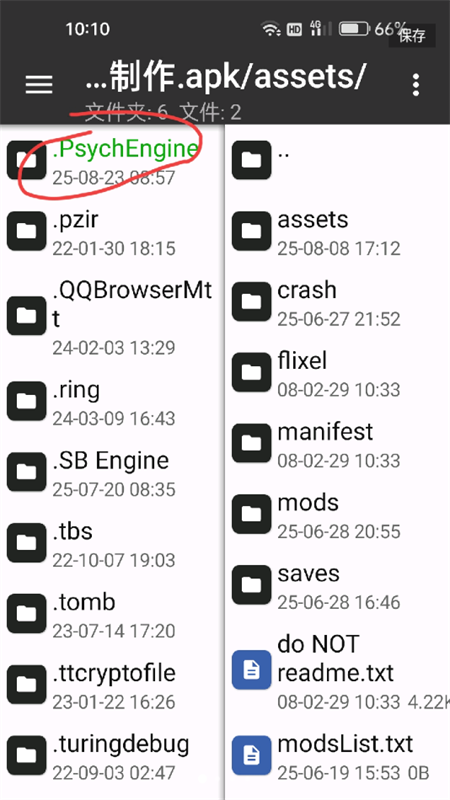 8、找到名为psychengine”的文件,长按并选择解压”。