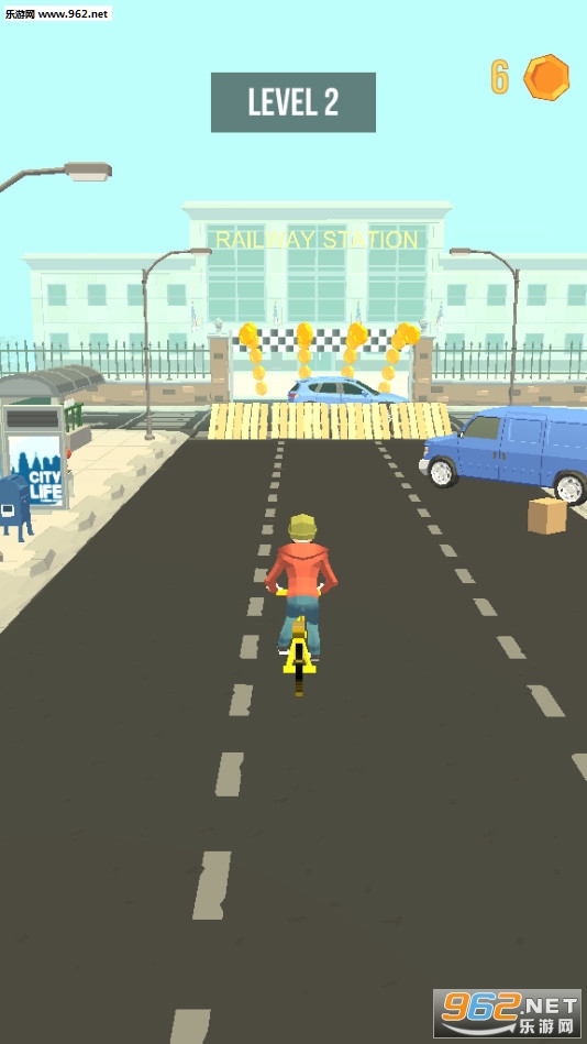 一款非常有趣的3d低模街机闯关游戏,游戏中玩家将骑着自行车以最快的速度不断的前进,当然结果往往就是被车撞倒,但是奇怪的是一碰车就倒,和碰瓷似的,游戏的玩法轻松有趣,推荐给喜欢休闲游戏的玩家。