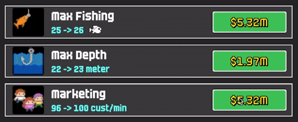 游戏体量小巧但内容饱满,短短几小时内即可体验从入门到进阶的完整循环。同时支持挂机钓鱼,即使离线也能稳步收获,真正实现不肝不氪”的休闲乐趣。