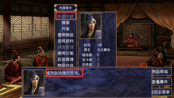 3. 进入内政界面后,点击【自动内政】即可高效治理城市,专注战略布局。