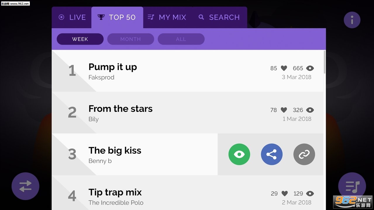 录制并和全世界玩家分享你的创作!如果获得足够的票数,你的混音作品就会出现在Incredibox Top 50排行榜里。