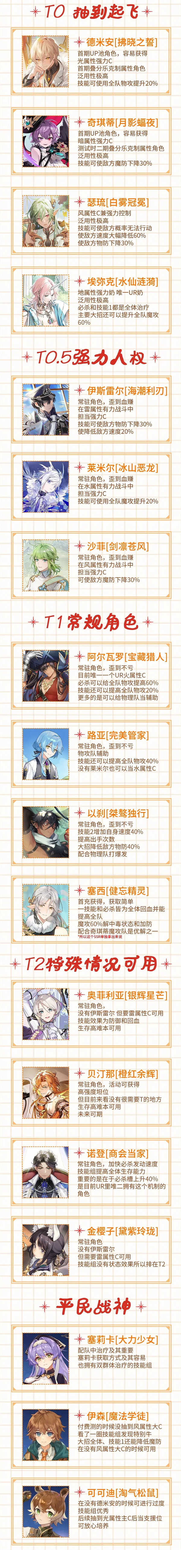 本榜单基于公测前付费测试数据优化,未包含开服难以获取的限定UR(如德米安[荣光暗面])及部分SSR,仅供参考且具时效性。