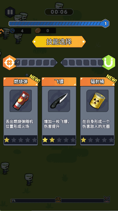 3、当上方进度条充满时,解锁新的武器或道具,为你的冒险保驾护航!