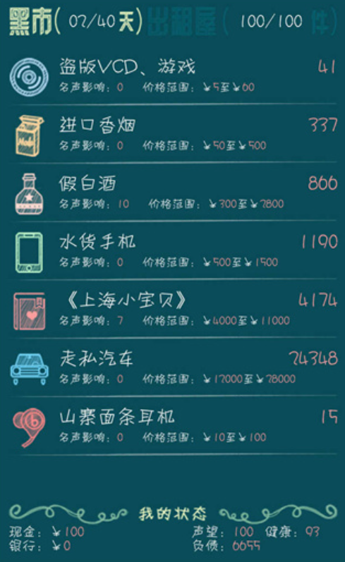 游戏在玩法之外注入了大量社会观察与黑色幽默。例如倒卖白酒不仅赚钱,还会触发愧疚值”变化;高利润往往伴随道德代价,名声系统将直接影响你能否租到好铺面、招募可靠伙伴。这种将经济行为与社会评价挂钩的设计,让每一次赚快钱”的诱惑都充满心理博弈。