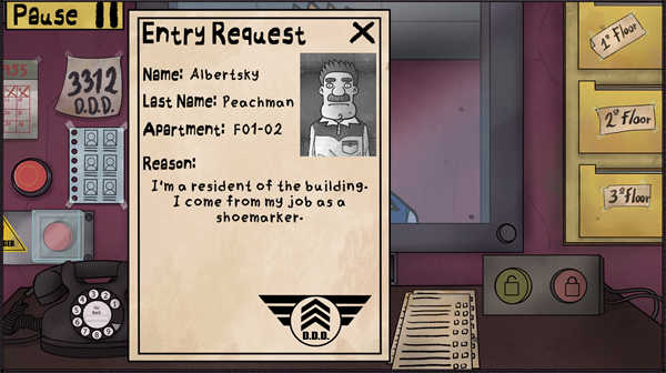 游戏以伪人识别”为核心机制,构建了一套多层次的身份验证系统。玩家需综合比对访客的面部特征、证件信息(如姓名、日期、照片)以及对话反应,判断其是否为伪装成人类的异常存在。随着难度提升,伪人的伪装愈发逼真,甚至能完美复刻证件与外貌,唯有通过逻辑提问才能暴露其非人思维模式。每一次放行或拦截,都将直接影响剧情走向与结局命运。