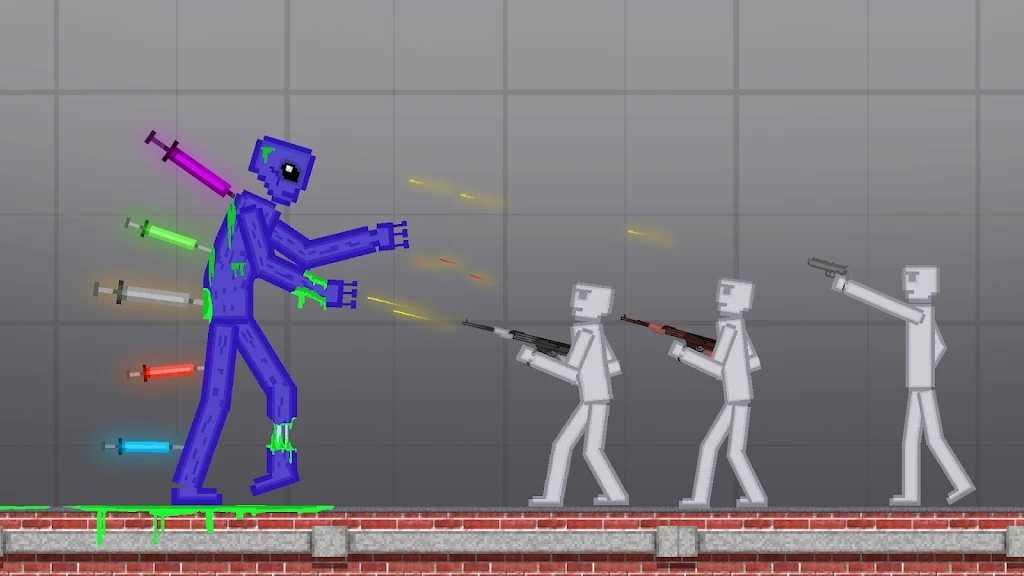 游戏采用高度拟真的物理引擎,精准还原物体碰撞、重力影响、爆炸冲击等效果。角色受击后会呈现流血、碎裂、燃烧或电击等动态反馈,搭配夸张又魔性的像素动画,既刺激又爆笑,带来强烈的感官冲击与解压快感。