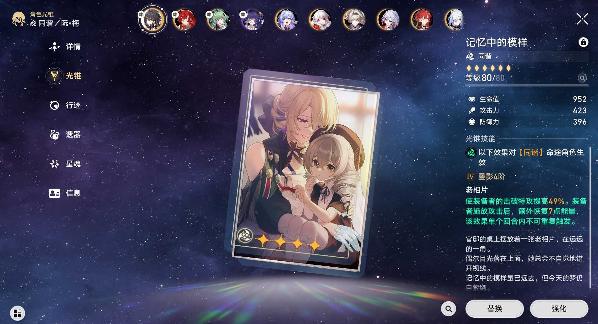 命途”决定角色职业定位(如毁灭、巡猎、存护等),是组队核心依据;属性克制影响击破效果,策略性极强。星魂系统(即命座)通过重复获取角色解锁,0命即可正常使用,1-2命提升显著,6命偏向深度养成。光锥(专属武器)方面,限定角色虽有专武,但高性价比四星/五星通用光锥仍是资源有限玩家的优选。