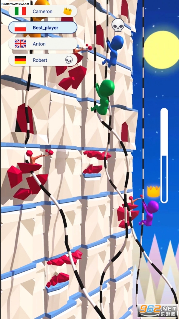 非常有趣的一款多人竞技类的冒险休闲游戏,玩家在游戏中一起比拼攀爬技术,玩法模式丰富,金币道具种类多样,玩起来很过瘾。