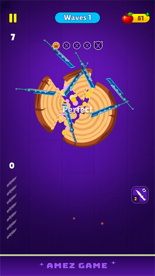 1. 轻触屏幕即可发射当前装备的刀具,刀具将沿直线轨迹飞向目标木桩。