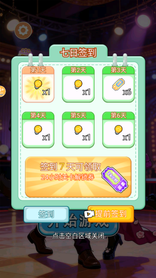 2、每日登录签到可获得关卡解锁券,积累道具资源以解锁更多挑战关卡与搭配素材库。
