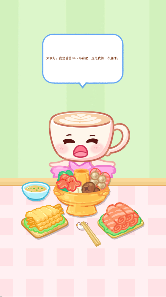 1、化身asmr美食主播,通过简易点击完成从备料到烹饪的全流程直播内容制作。