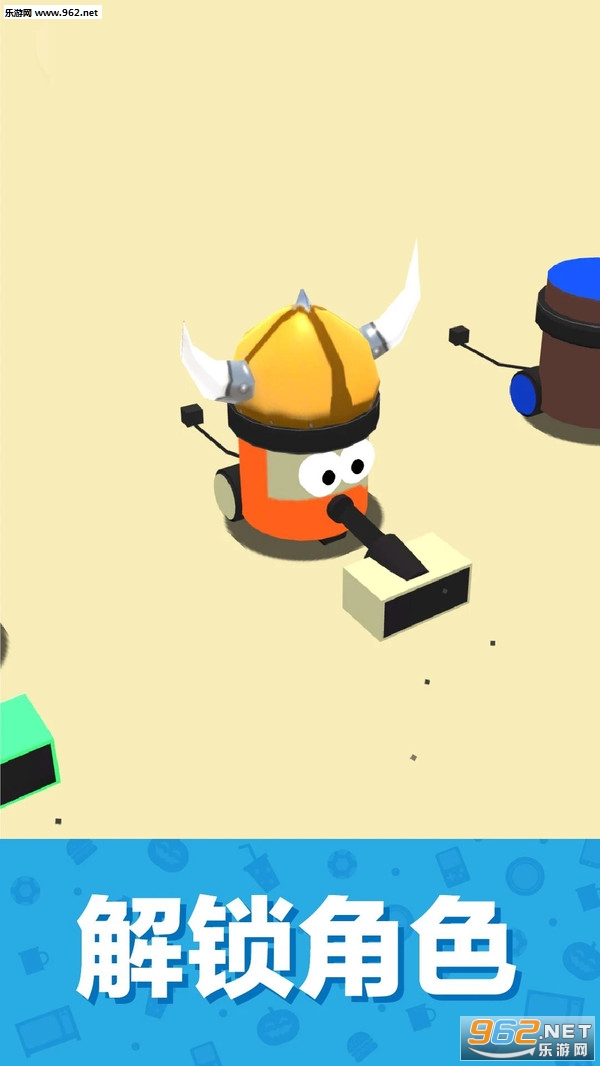 可爱诙谐的卡通人设风格,还可以在不断的游戏中解锁更多有趣的吸尘器皮肤,简单对战欢乐十足。